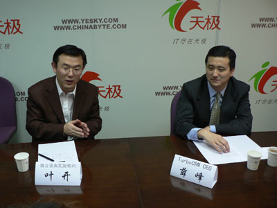 主持人:剖析行業(yè)發(fā)展趨勢(shì),體察企業(yè)e化需求,各位網(wǎng)友下午好,感謝大家關(guān)注本期的e領(lǐng)袖對(duì)話。自2002年開(kāi)始,CRM在中國(guó)取得了快速的發(fā)展,但在人們欣慰的同時(shí)還有一個(gè)現(xiàn)實(shí)讓CRM的概念可能人盡皆知,但CRM的理念卻遠(yuǎn)沒(méi)有深入人心。另外,最近一頓時(shí)間,在領(lǐng)域內(nèi)舉足輕重人物的言行以及一些知名CRM企業(yè)的變數(shù),讓人們對(duì)CRM的未來(lái)有了各種各樣的猜測(cè)和顧慮。那么CRM到底會(huì)有一個(gè)什么樣的未來(lái),CRM為會(huì)帶給中國(guó)的企業(yè)用戶(hù)一個(gè)什么樣的未來(lái),今天我們對(duì)話請(qǐng)到的是在CRM領(lǐng)域相當(dāng)資深的兩位嘉賓,看看他們會(huì)給我們一個(gè)什么樣的答案。今天這個(gè)話題引起了網(wǎng)友濃厚的興趣,在進(jìn)來(lái)之前很多網(wǎng)友已經(jīng)提出了問(wèn)題,今天會(huì)把網(wǎng)友的問(wèn)題結(jié)合我們?cè)掝}一起進(jìn)行,請(qǐng)大家隨時(shí)關(guān)注,首先介紹一下今天來(lái)到對(duì)話的兩位嘉賓。一位是TurboCRMCEO薛峰。這位是獨(dú)立咨詢(xún)實(shí)施顧問(wèn)葉開(kāi)老師。首先歡迎兩位到來(lái),今天話題可能跟之前不同,之前會(huì)了我們?cè)掝},隨后結(jié)合我們網(wǎng)友問(wèn)題來(lái)聊。但是今天網(wǎng)友的問(wèn)題和今天的主題比較切合,所以就網(wǎng)友問(wèn)題和我們?cè)掝}結(jié)合起來(lái)進(jìn)行,今天把首發(fā)交給網(wǎng)友,Turbo算是國(guó)內(nèi)最大的嗎?先請(qǐng)葉老師回答一下。