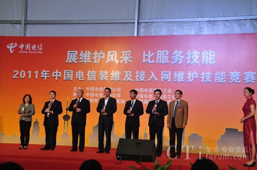 CTI論壇(ctiforum)11月30日消息(記者 張潔):近日,“2011年中國電信裝維及接入網(wǎng)維護(hù)技能競賽”決賽在上海舉行,來自全國各。ㄗ灾螀^(qū)、直轄市)電信分公司的31支代表隊(duì)參加了本次大賽。烽火通信作為本次競賽的主要協(xié)辦單位之一,從競賽人員培訓(xùn)、設(shè)備安裝測試、競賽試題開發(fā)、選派裁判、現(xiàn)場設(shè)備保障等方面全程協(xié)助,并榮獲中國電信集團(tuán)“最佳支撐獎”榮譽(yù)稱號。