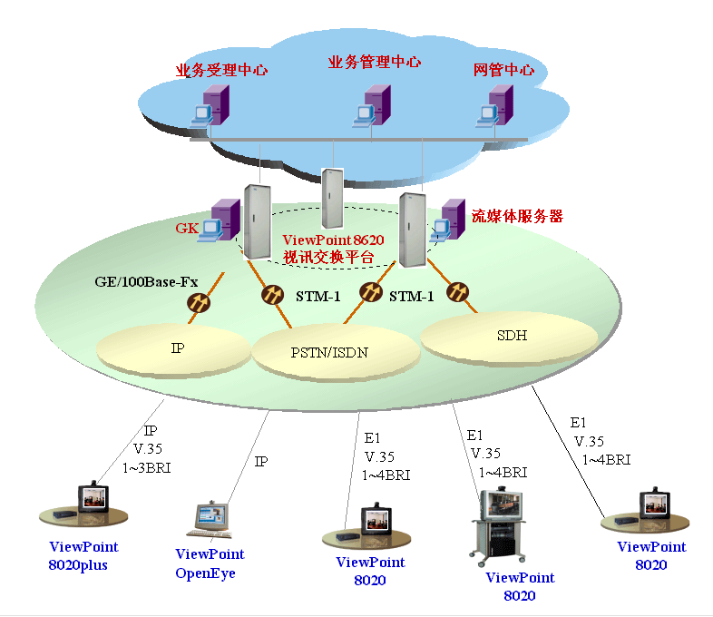 對(duì)于專網(wǎng)或非面向運(yùn)行的視訊網(wǎng)絡(luò)建設(shè),“視點(diǎn)通”ViewPoint®8000綜合視訊系統(tǒng)可以提供寬窄帶一體化的視訊交換平臺(tái),提供各種線路接口方式,可充分利用專網(wǎng)和企業(yè)的現(xiàn)有網(wǎng)絡(luò),同時(shí)考慮網(wǎng)絡(luò)的發(fā)展需要,支持?jǐn)U展其它接口,保護(hù)用戶投資。