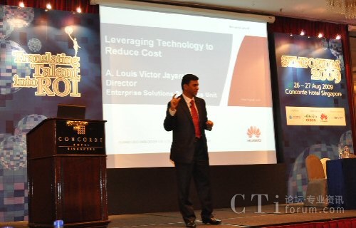 本次CCAS Symposium 2009的主題為“Translating talent into ROI”,著重探討在目前金融危機(jī)的陰霾下,如何通過精細(xì)化的運(yùn)營(yíng)管理,將人力資源或人才轉(zhuǎn)換成實(shí)實(shí)在在的投資回報(bào)率。華為資深專家Louis”做了”Leveraging