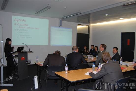 圖:和法國(guó)電信的研發(fā)部門(mén)交流,其技術(shù)總監(jiān)非常認(rèn)同華為IPCC方案,要求推薦到其他子網(wǎng)
