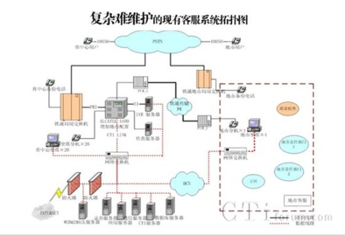 中國(guó)鐵通10050客戶服務(wù)中心,自2002年全國(guó)各省建設(shè)完畢后,一直為鐵通的用戶提供各種業(yè)務(wù)咨詢、故障處理及投訴申告服務(wù)。隨著鐵通用戶數(shù)量的不斷激增,鐵通目前的10050客服中心系統(tǒng)從技術(shù)架構(gòu)、規(guī)模、功能上均無(wú)法滿足市場(chǎng)服務(wù)需求,所用的各種核心設(shè)備也基本停產(chǎn),造成了很大的維護(hù)難題。