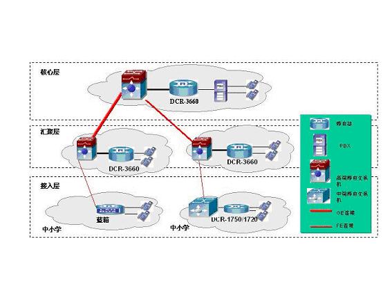 神州數(shù)碼用于市教委和區(qū)縣教委接入的DCR-3660、DCR-2600系列路由器全面支持H.323 VoIP功能,能夠靈活提供E&M、FXO、FXS等多種語(yǔ)音接口方便與各類(lèi)PBX和傳統(tǒng)語(yǔ)音設(shè)備的連接,并提供等位撥號(hào)等針對(duì)教育網(wǎng)絡(luò)定制開(kāi)發(fā)的特性功能,是構(gòu)建低成本、高性能教育系統(tǒng)IP語(yǔ)音網(wǎng)絡(luò)和數(shù)據(jù)網(wǎng)絡(luò)的可靠保證。