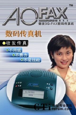 傲發(fā)3G-FAX也是唯一一個(gè)擁有全系列電子傳真機(jī)系列產(chǎn)品的品牌,產(chǎn)品包括免費(fèi)使用的傲發(fā)3G-FAX傳真軟件A10、單電腦使用的數(shù)碼傳真機(jī)A20、4用戶環(huán)境的網(wǎng)絡(luò)傳真機(jī)A30、軍警使用的軍用傳真系統(tǒng)A50、政府公安部門使用的多路傳真群發(fā)系統(tǒng)A80X-GA、不限用戶數(shù)目的網(wǎng)絡(luò)傳真機(jī)A60、1至2線的大眾型傳真服務(wù)器A801和A802,2至256傳真線路多種規(guī)格的專業(yè)型傳真服務(wù)器A80X、跨區(qū)域大型公司使用的集團(tuán)傳真系統(tǒng)和行業(yè)解決方案等。