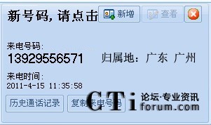 來(lái)電彈屏自動(dòng)顯示對(duì)方號(hào)碼歸屬地?cái)?shù)據(jù)信息;