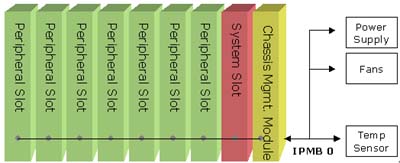 Management Module (CMM),用來集中管理外圍槽(Peripheral Slots)及系統(tǒng)槽(System