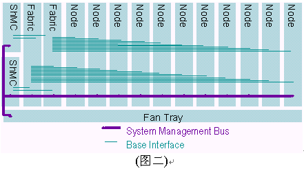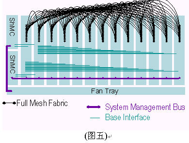 I2C總線(xiàn)使用100Khz時(shí)鐘和3.3V信號(hào)。ATCA規(guī)范制定要求2個(gè)IPMB總線(xiàn),分別冠以IPMB-A和IPMB-B,兩條總線(xiàn)合一稱(chēng)之為IPMB-0。IPMB可以以雙總線(xiàn)或雙星型配置方式實(shí)現(xiàn)。之所以要求雙IPMB總線(xiàn)是為了保證系統(tǒng)管理子系統(tǒng)的可靠性。IPMB總線(xiàn)被用作聯(lián)接ShMC與ATCA單板和ATCA機(jī)架中FRUs的橋梁。雙IPMB總線(xiàn)可同時(shí)被使用以加倍傳輸頻寬,但設(shè)計(jì)者必須考慮萬(wàn)一其中一條IPMB總線(xiàn)失靈所帶來(lái)的沖擊。典型的ATCA背板上系統(tǒng)管理間的互聯(lián)如下圖所示,在背板上有兩個(gè)ShMC槽位,兩個(gè)交換槽位,11個(gè)節(jié)點(diǎn)槽位和1個(gè)風(fēng)扇的連接。值得說(shuō)明的是管理總線(xiàn)與所有的節(jié)點(diǎn)槽、交換槽通過(guò)一對(duì)雙備援的ShMC聯(lián)接。
