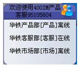 華鐵廣通400+在線客服工具集試用版在2007年9月全面推出市場(chǎng)后,以其區(qū)別于市場(chǎng)同類IM產(chǎn)品例如分組、排隊(duì)、座席間呼叫、訪客管理等源于呼叫中心理念的獨(dú)特功能得到廣泛認(rèn)同,目前已經(jīng)在IT行業(yè)、網(wǎng)絡(luò)服務(wù)、廣告?zhèn)髅、教育培?xùn)、通訊等付諸應(yīng)用。我們相信通過越來越多的客戶不斷地關(guān)注和體驗(yàn),將對(duì)400IM產(chǎn)品完善提出寶貴意見,我們更相信有了大家的支持,400IM正式版本的推出將為期不遠(yuǎn)。