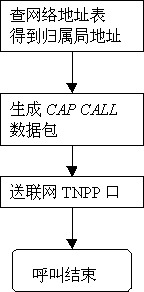 異地呼叫漫游到本地的異地機(jī)時(shí),異地發(fā)出的CAP CALL會(huì)送入本地發(fā)呼工作站,發(fā)呼工作站僅修改其目的地址,把它轉(zhuǎn)發(fā)給本地CNET由CNET送到編碼器編碼后送到發(fā)射機(jī)發(fā)射,完成呼叫過程。詳見流程5。