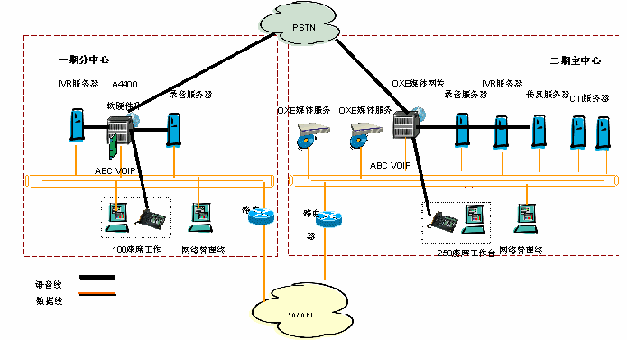 基礎(chǔ)語音系統(tǒng)采用阿爾卡特OmniPCX Enterprise語音通信平臺,它采用分布式的語音體系架構(gòu),完全融合IP技術(shù),并可集成傳統(tǒng)的TDM語音。OmniPCX Enterprise提供開放的標(biāo)準(zhǔn)和靈活的擴展能力,并提供99.999%的高可靠性。讓用戶靈活的配置其座席的地理位置和通信方式,并保證系統(tǒng)運行安全可靠。OmniPCX Enterprise交換機(二期)計劃采用Appliance Server呼叫服務(wù)器雙備份結(jié)構(gòu),提供RSI接口與GENESYS相連,以及并線錄音系統(tǒng)接口。今后,項目還將采用先進的阿爾卡特-My Phone IP WEB軟電話,提高內(nèi)部通信能力,優(yōu)化業(yè)務(wù)流程。