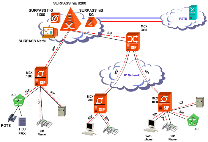 - MCX2000——集中路由控制服務(wù)器,提供IP CENTREX功能,支持多臺(tái)MCX200或MCX1000的互通,集中控制跨MCX200或MCX1000的呼叫。典型應(yīng)用場(chǎng)景是與MCX200/1000混合組網(wǎng),構(gòu)成企業(yè)廣域IP語(yǔ)音網(wǎng)絡(luò)或NGN大規(guī)模客戶接入網(wǎng)絡(luò)。