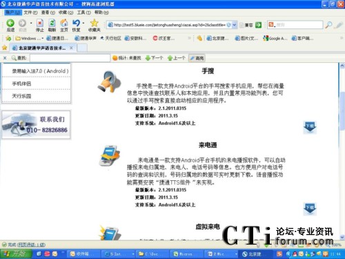在下載中心,除了錄易輸入法的下載外,用戶還可以下載捷通華聲的其他產(chǎn)品,直接啟動(dòng)相應(yīng)程序的“手搜”;融入捷通華聲語(yǔ)音合成技術(shù)(TTS)的“來(lái)電通”;可以模擬來(lái)電應(yīng)用的“虛擬來(lái)電”;應(yīng)用捷通華聲國(guó)際頂級(jí)語(yǔ)音合成技術(shù)(TTS)的“聽書”和“語(yǔ)音詞典”,以及運(yùn)用捷通華聲語(yǔ)音合成技術(shù),匯集童聲、女聲、男聲、機(jī)器聲等數(shù)百種音效變幻的“天行樂園語(yǔ)音斗地主”。這些應(yīng)用不僅豐富了用戶的手機(jī),更打開了高新科技的大門,讓用戶隨時(shí)隨地享受各種移動(dòng)互聯(lián)網(wǎng)服務(wù)。
