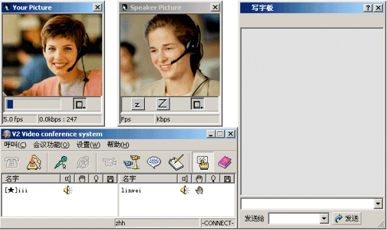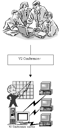 I P視頻會議,是一種利用普通的PC機加上簡單的視頻攝像頭和耳機麥克風,通過Internet或者是局域網(wǎng)進行傳輸,以低廉的成本傳送數(shù)據(jù)、視頻和音頻信號的新型會議方式。V2公司的視頻會議產(chǎn)品V2 Conference 就采用了這種技術(shù)先進而且經(jīng)濟合算的方式,與傳統(tǒng)的需要專用的服務(wù)器和硬件支持的視頻會議相比,該系統(tǒng)可以使您無需進行成本高昂的投入,就實現(xiàn)高質(zhì)量、高可靠性的音視頻通訊。同時,為了方便您的管理,V2 Conference提供了會議管理的功能,使您足不出戶,就可以掌控全局。