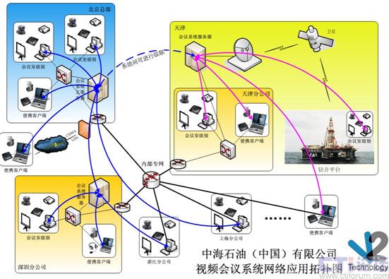 中海石油(中國(guó))有限公司V2 Conference系統(tǒng)網(wǎng)絡(luò)應(yīng)用拓?fù)鋱D: