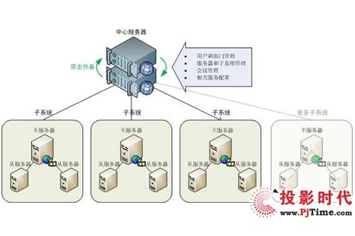 用戶、會(huì)議、服務(wù)器的管理工作都放在中心服務(wù)器來進(jìn)行,將會(huì)議功能和管理功能分離。用戶的登錄會(huì)議、管理系統(tǒng)只要訪問一個(gè)中心服務(wù)器即可,簡(jiǎn)化了用戶操作,并降低系統(tǒng)風(fēng)險(xiǎn)。