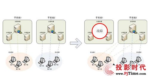 當(dāng)一個(gè)子系統(tǒng)出現(xiàn)故障時(shí),系統(tǒng)可以自動(dòng)將故障子系統(tǒng)上的會(huì)議遷移到其他子系統(tǒng)上,做到子系統(tǒng)互為備份,極大提高了系統(tǒng)的運(yùn)行支撐能力。