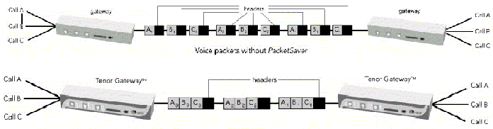 saverTM會將同一時間通話中將同一個目的地的所有語音IP包的包頭部分共享,這樣可以節(jié)省許多頻寬,并加快設(shè)備運(yùn)作的速度。經(jīng)過實驗證明:只需三方電話就可改善40%的頻寬使用效率。此特色讓Quintum