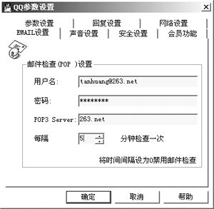 IM和E-mail是我們在網(wǎng)上最常用的兩種工具,如今不少IM軟件將兩者作了完美的結(jié)合。在QQ中你可以直接給自己的好友發(fā)郵件,而無須再輸入E-mail地址;此外對于自己的信箱QQ還有檢查新郵件功能,在“系統(tǒng)參數(shù)”中設(shè)置您自己的E-mail,填好POP3地址,您可以選擇定時檢查時間,QQ就會自動檢查有否新郵件到達。對于MSN Messenger來說它的郵件功能就更強大了,使用MSN Messenger你必須有一個郵件賬號,每次當(dāng)您的MSN Messenger登錄成功時,在右下角自動彈出一個窗口,里面寫有該E-mail賬戶內(nèi)的信件狀況,在使用過程中如果您的郵箱中有了新郵件,馬上會冒出一個提示窗。