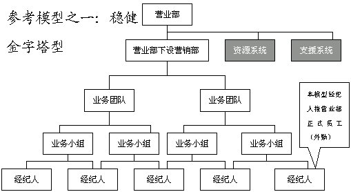 此五種模式建立在營(yíng)業(yè)部基礎(chǔ)上,在券商總部,建議設(shè)立垂直的業(yè)務(wù)管理機(jī)構(gòu),即經(jīng)紀(jì)業(yè)務(wù)總部實(shí)行事業(yè)部制,下設(shè)分工專(zhuān)業(yè)的市場(chǎng)營(yíng)銷(xiāo)部、客戶(hù)服務(wù)部、經(jīng)紀(jì)人訓(xùn)練部和綜合管理部等。