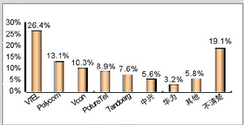 各品牌的認(rèn)知度與其市場銷售情況息息相關(guān)。例如,VTEL是最早進(jìn)入中國市場的視頻會議廠商,并在相當(dāng)長的時期內(nèi)占據(jù)市場領(lǐng)先地位,取得顯著的品牌認(rèn)知度是有其廣泛用戶基礎(chǔ)作為支撐的;Polycom雖然從1998年才開始進(jìn)軍中國市場,但在基于IP的視頻會議系統(tǒng)的市場爭奪中取得較好的成績;PictureTel已經(jīng)被Polycom收購,品牌認(rèn)知度也相對較低;而國內(nèi)品牌中興、華為剛剛起步,也很難達(dá)到較高的認(rèn)知度。