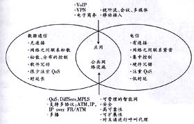 NGN是融合網(wǎng)絡。數(shù)據(jù)網(wǎng)與電信網(wǎng)曾是兩個有著不同特性的網(wǎng)絡,它們的融合將帶來一系列新的業(yè)務,并對網(wǎng)絡平臺提出新的要求(見圖1)。因此,NGN的網(wǎng)絡功能結(jié)構如何設定是我們要關注的重點。