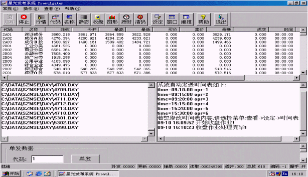 因為要發(fā)送歷史圖形,所以系統(tǒng)要求每天在收市以后作一次收盤作業(yè)。