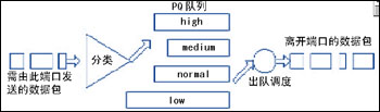 為了實(shí)現(xiàn)QoS,需要改變傳統(tǒng)IP網(wǎng)絡(luò)的FIFO隊(duì)列傳輸報(bào)文機(jī)制,轉(zhuǎn)而采用優(yōu)先級隊(duì)列(Priority Queueing, PQ)機(jī)制,見圖2。