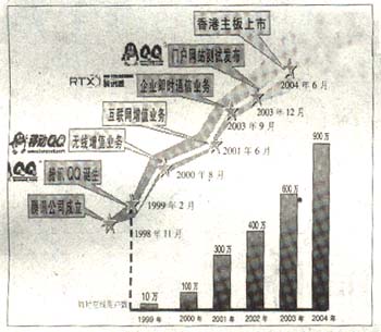 正是憑借著這些優(yōu)勢,即時通信吸引聚集著一些忠誠用戶,并開始搭建網(wǎng)絡(luò)廣告、無線增值等一系列各種潛在的交易平臺?梢韵胂螅粋絕佳的聊天窗口同時也是一個方便的交易窗口和暢通的付費(fèi)入口,即時通信正在摸索一條前所未有的盈利模式。有專家指出,經(jīng)過近5年的曲折前行,即時通信的盈利模式將在2005年逐步明確。以騰訊QQ為例,我們來剖析一下即時通信的盈利模式是如何由模糊走向清晰的。從1999年2月QQ發(fā)布到2000年5月,QQ迅速聚攏了10萬用戶。2000年8月,騰訊公司同廣東移動合作,僅僅用了一年就扭虧為盈,實(shí)現(xiàn)了1000萬人民幣的純利潤。