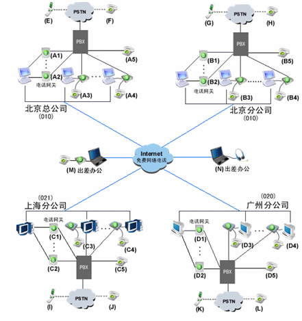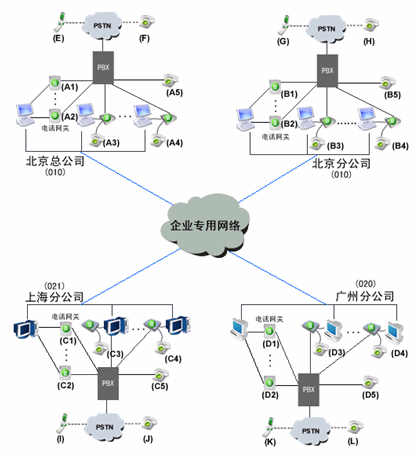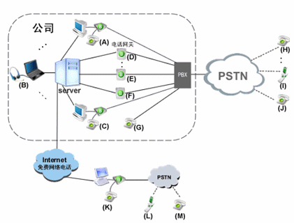 由玻瑞器客戶端和電話網(wǎng)關(guān)組成企業(yè)軟交換系統(tǒng)