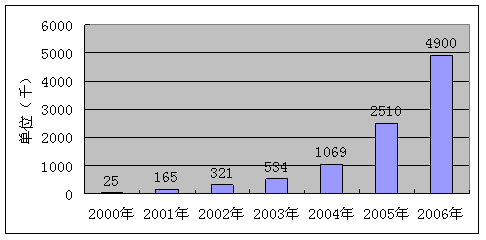 圖1 RIM公司2000-2006年Blackberry用戶數(shù)