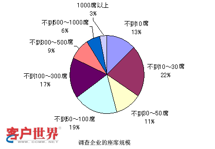 那么和剛才雜志社調(diào)查的結(jié)果是一樣的。這個數(shù)字又是政府方面調(diào)查的結(jié)果,他們調(diào)查的很細(xì),對很小規(guī)模的,比如說1-4人的呼叫中心都進(jìn)行了調(diào)查,并且看到這種小規(guī)模的呼叫中心還占有很大的比例。可以看到,10人以下的呼叫中心可能在這個結(jié)果里面占了基本上高于50%,所以可能得到一個結(jié)論,就是在日本小型的呼叫中心非常多。