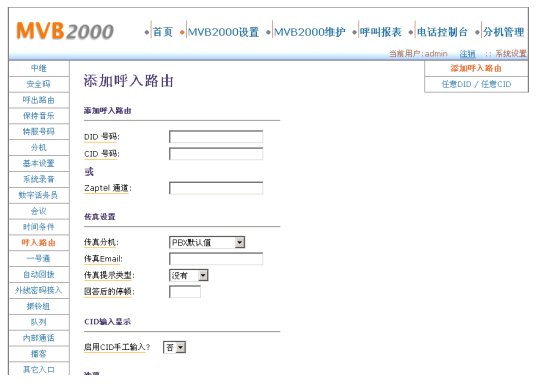 MVB2000設(shè)置——呼入路由: