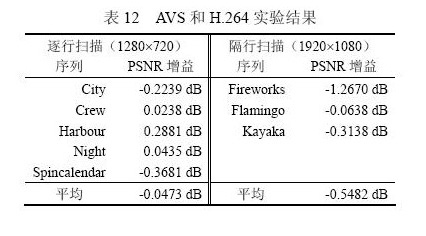 對(duì)視頻編碼標(biāo)準(zhǔn)進(jìn)行客觀評(píng)價(jià)的常用方法是峰值信噪比PSNR。表9、表10分別給出了AVS與MPEG-2標(biāo)準(zhǔn)以及AVS與MPEG-4 AVC/H.264標(biāo)準(zhǔn)main