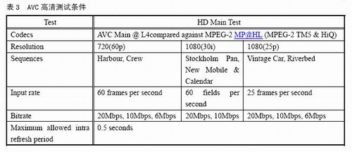 鑒于AVC的編碼效率能夠達(dá)到MPEG-2的2倍,我國(guó)有關(guān)測(cè)試機(jī)構(gòu)在測(cè)試AVS時(shí),通常把AVS視頻的碼率也設(shè)在MPEG-2典型碼率的二分之一或更低,也就是測(cè)試AVS編碼效率是MPEG-2的2倍或更高的情況下的AVS視頻的編碼質(zhì)量是否能夠廣播要求。