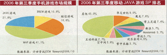 目前,中國(guó)手機(jī)用戶已經(jīng)突破4億。今年10月,計(jì)世資訊發(fā)布的調(diào)查報(bào)告說(shuō),2006年,中國(guó)手機(jī)游戲市場(chǎng)規(guī)模將超過(guò)18億元人民幣;稍早些時(shí)候,易觀國(guó)際的調(diào)查報(bào)告則顯示,今年中國(guó)的手機(jī)游戲市場(chǎng)規(guī)模接近22億元人民幣,到2008年時(shí)將超過(guò)60億元人民幣。在全球,手機(jī)游戲市場(chǎng)以每年超過(guò)40%的速度增長(zhǎng),已經(jīng)超過(guò)音樂(lè)和其他無(wú)線增值服務(wù),成為未來(lái)無(wú)線增值服務(wù)的明星業(yè)務(wù)。