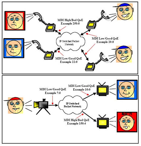factor,都能夠在MDI定量和實(shí)時(shí)獲得的抖動(dòng)和丟包信息基礎(chǔ)上推算出來。網(wǎng)絡(luò)的入口、出口以及重要的路由器都可以設(shè)置MDI監(jiān)控,采集的信息被送到網(wǎng)絡(luò)監(jiān)管中心,提醒業(yè)務(wù)提供商語音和視頻業(yè)務(wù)的動(dòng)態(tài)質(zhì)量,設(shè)置能預(yù)測(cè)MDI狀況。