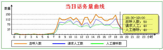 3.3 呼叫監(jiān)控。系統(tǒng)隨時(shí)提供話(huà)務(wù)曲線(xiàn),反映95598熱線(xiàn)整體的服務(wù)水平,如下圖: