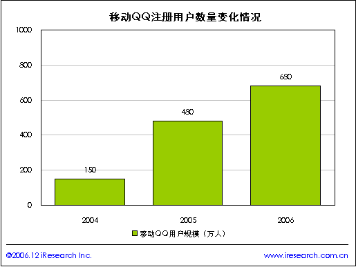 近兩年移動QQ的市場規(guī)模迅速擴大,iResearch研究結果顯示2006年移動QQ用戶規(guī)模達到680萬人,移動QQ所帶來的現(xiàn)金收入成為騰訊上市公司最重要的收入之一。移動IM與互聯(lián)網(wǎng)IM最大的不同在于產(chǎn)業(yè)鏈移動運營商的參與。艾瑞認為互聯(lián)互通是移動IM產(chǎn)業(yè)整合和發(fā)展必然趨勢。