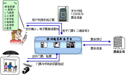 何謂手機(jī)條碼?手機(jī)條碼是以手機(jī)短信的方式將條碼發(fā)送到手機(jī)上并顯示在手機(jī)液晶屏幕上的條碼新形式。這是一種快速便捷的以確認(rèn)使用者身份為目的的無(wú)紙化掃描新形式,通過(guò)條碼閱讀設(shè)備對(duì)手機(jī)條碼的閱讀來(lái)獲取相應(yīng)的信息,從而方便的確認(rèn)使用者的身份。它可以被廣泛應(yīng)用于網(wǎng)絡(luò)購(gòu)物、電子票據(jù)、會(huì)員卡、電子支付等領(lǐng)域,為這些領(lǐng)域健康快速的成長(zhǎng)和發(fā)展提供了新的推進(jìn)作用。鑒于信息量在此類(lèi)應(yīng)用中有比較大的需求,故現(xiàn)在此項(xiàng)目中用的是二維條碼,且以QR,DataMatrix居多。項(xiàng)目實(shí)施過(guò)程中涉及到的硬件設(shè)備包括手機(jī)(需要支持WAP服務(wù))和手機(jī)條碼閱讀器。手機(jī)通過(guò)訪問(wèn)移動(dòng)通訊平臺(tái),獲取電子門(mén)票信息,同時(shí)移動(dòng)通訊平臺(tái)根據(jù)手機(jī)驗(yàn)證信息反饋給手機(jī)一個(gè)電子二維條碼。當(dāng)觀眾觀看電影時(shí),在檢票處出示手機(jī)上的二維條碼,系統(tǒng)通過(guò)條碼閱讀器識(shí)讀條碼信息并對(duì)信息進(jìn)行驗(yàn)證,驗(yàn)證通過(guò)后系統(tǒng)將從手機(jī)賬戶(hù)上自動(dòng)扣取相關(guān)費(fèi)用。利用手機(jī)條碼實(shí)現(xiàn)對(duì)大型活動(dòng)門(mén)票的管理,將使票務(wù)系統(tǒng)得到安全保障,同時(shí)也會(huì)提高極大的提高票務(wù)管理工作的效率,降低票務(wù)成本,提升客戶(hù)服務(wù)質(zhì)量。