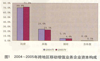 電信市場(chǎng)的開放吸引了大量中小企業(yè),而他們進(jìn)入的領(lǐng)域也大多集中在增值服務(wù)市場(chǎng)。目前,中國(guó)的電信增值服務(wù)市場(chǎng)的各類中小企業(yè)已達(dá)到上萬(wàn)家,業(yè)務(wù)范圍幾乎涉及全部增值領(lǐng)域,成為通信經(jīng)營(yíng)服務(wù)業(yè)務(wù)的重要組成部分。在1.4萬(wàn)家電信增值企業(yè)中,民營(yíng)企業(yè)比例占到55.37%,民營(yíng)資本已經(jīng)成為該市場(chǎng)的主體。