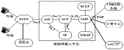 Management Point)的接入管理。SCP通過七號信令網(wǎng)與SSP和IP相連,通過數(shù)據(jù)鏈路(X.25)與SMP相連。SCP與SSP和IP之間的通信規(guī)程采用智能網(wǎng)應(yīng)用規(guī)程(INAP).IP(Intelligent