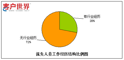 呼叫中心由于高壓力、24小時輪班等工作特性,有相當(dāng)比例的流失是因為不適應(yīng)工作環(huán)境而導(dǎo)致的,其中一個主要原因就是新入職員工想象中的工作環(huán)境和現(xiàn)實情況大相徑庭。而有呼叫中心工作經(jīng)驗的員工對于這點的適應(yīng)性相對較強(qiáng),因此我們對呼叫中心員工是否有行業(yè)經(jīng)歷方面的情況進(jìn)行了統(tǒng)計分析。