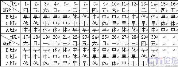 1)正常日班人員:主要的工作時(shí)間是8:00~16:00,該班組人員是固定在這一時(shí)間段內(nèi)工作,不另作安排。