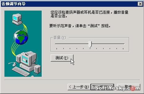 單擊“下一步”跳過Netmeeting服務器設置,此時向導會要求對計算機聲卡和麥克風進行測試,如圖5。