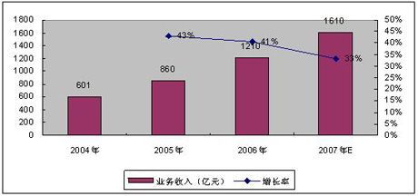 賽迪顧問預(yù)測(cè)2007年底,我國(guó)增值電信業(yè)務(wù)市場(chǎng)收入有望超過1600億元,增速高達(dá)33%,移動(dòng)增值業(yè)務(wù)收入規(guī)模將達(dá)980億元左右,占比高達(dá)61.25%。2007年增值電信業(yè)務(wù)經(jīng)營(yíng)企業(yè)的數(shù)量將會(huì)出現(xiàn)負(fù)增長(zhǎng),量的下降帶來質(zhì)的提升,表明增值電信業(yè)市場(chǎng)已經(jīng)趨于良性發(fā)展。