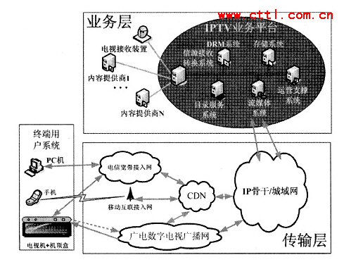 從上面的分析中可以看出。IPTV業(yè)務平臺具有明顯的NGN業(yè)務層特征,屬于NGN業(yè)務層部分;IPTV傳輸網(wǎng)絡具有明顯的NGN傳輸層特征,屬于NGN傳輸層部分;IPTV用戶終端設備具有明顯的NGN用戶終端特征。屬于NGN用戶終端部分。