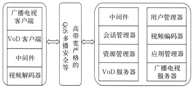 前端播放系統(tǒng)由許多部分組成,包括中間件,MPEG編碼器,VoD服務(wù)器,廣播電視服務(wù)器,用戶管理器,資源管理器,會話管理器和應(yīng)用管理器。