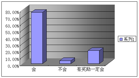 A、會(76.36%) B、不會(4.3%) C、有獎勵一定會(19.34%)
