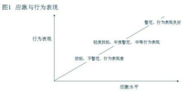 當應激水平處于一個較低的指標時人在心理上處于一個放松、不警覺的狀態(tài),從而關聯的行為表現就比較差但隨著應激水平的加大,相關聯的形為表現就會從中等向表現良好過渡。