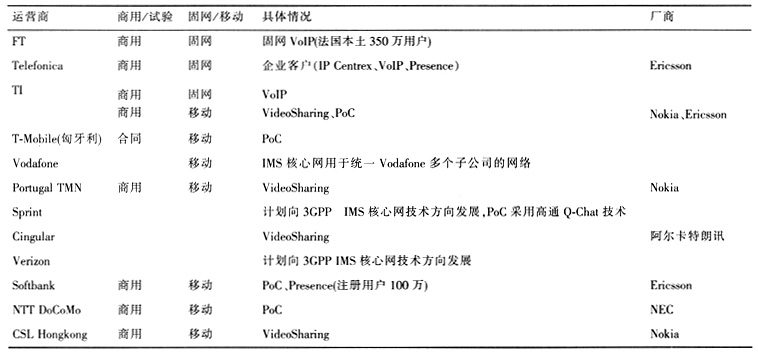 表1 國內(nèi)外運營商IMS應(yīng)用案例